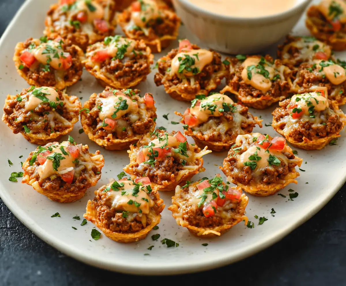 This recipe makes a delightful appetizer or snack, combining crispy cups with savory beef, melty cheese, and creamy ranch. Perfect for any gathering!