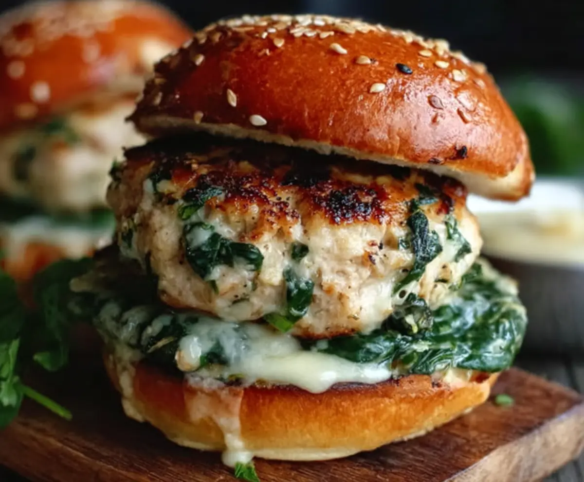 These White Cheddar Spinach Chicken Burgers are juicy, cheesy, and packed with greens! The creamy cheddar blends perfectly with the spinach for a tasty twist on a classic burger.